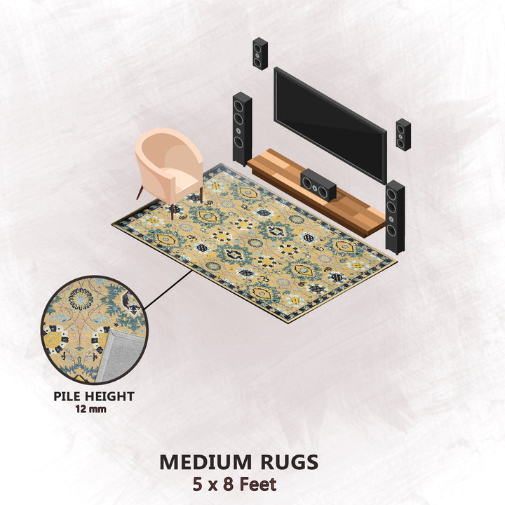 Premium Hand-Tufted Rug Made of 100% Wool - Cankiri Garden - 5x8 Feet