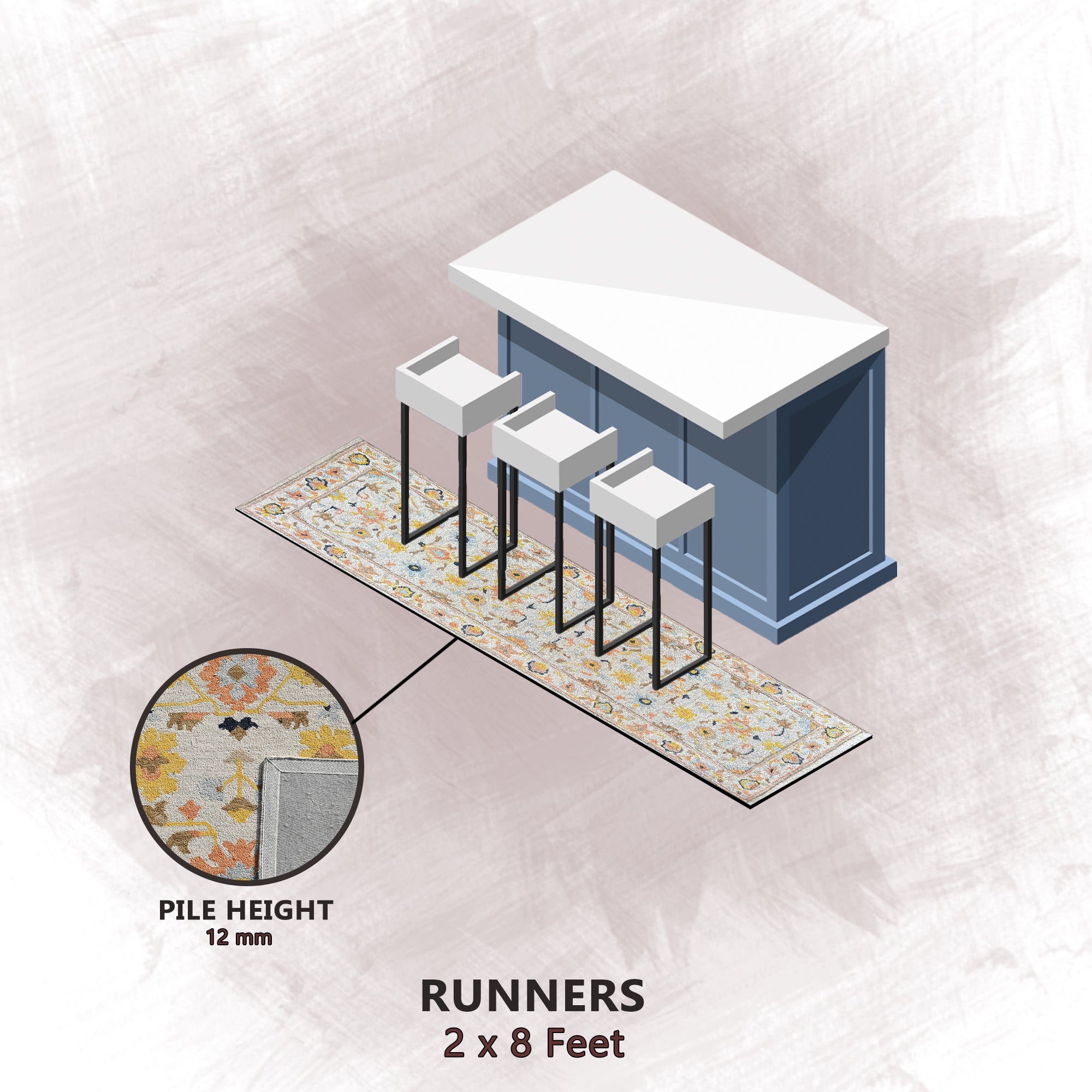 Premium Hand-Tufted Rug Made of 100% Wool - Flora Meadow - 2x8 Feet