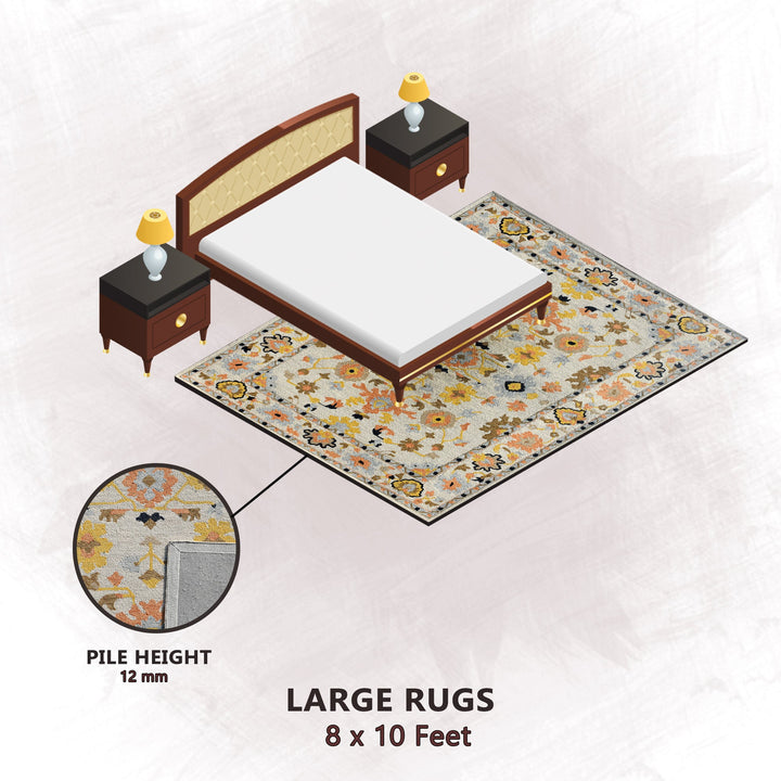 Premium Hand-Tufted Rug Made of 100% Wool - Flora Meadow - 8x10 Feet