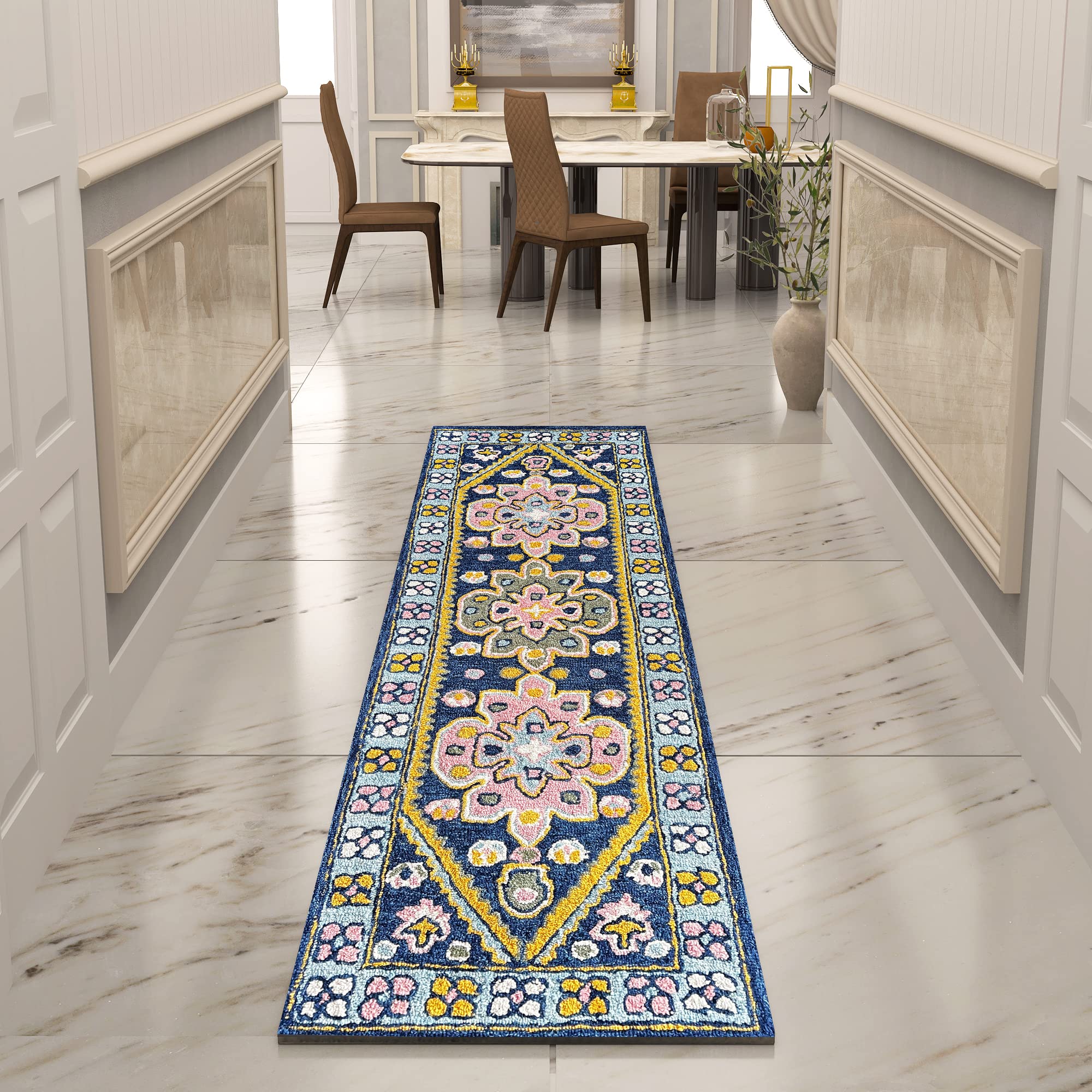Premium Hand-Tufted Rug Made of 100% Wool - Lotus Bloom - 2x8 Feet