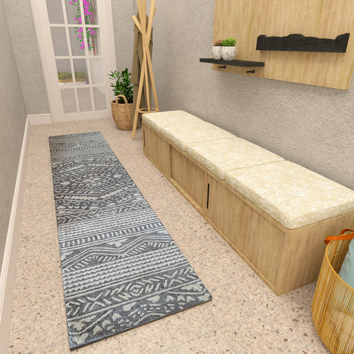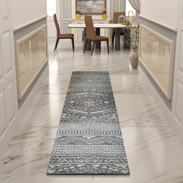 Premium Hand-Tufted Rug Made of 100% Wool - Midnight Mist - 2x10 Feet