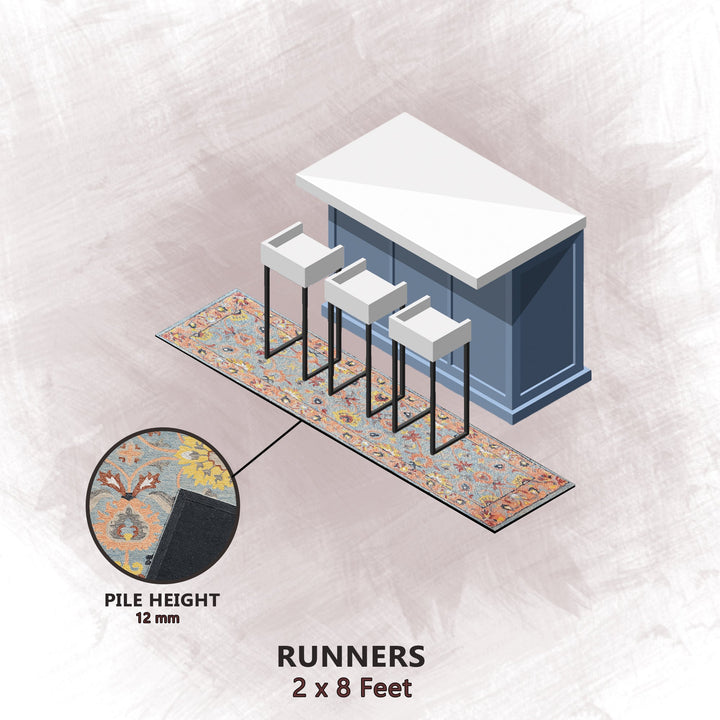Premium Hand-Tufted Rug Made of 100% Wool - Oui Versaille - 2x8 Feet