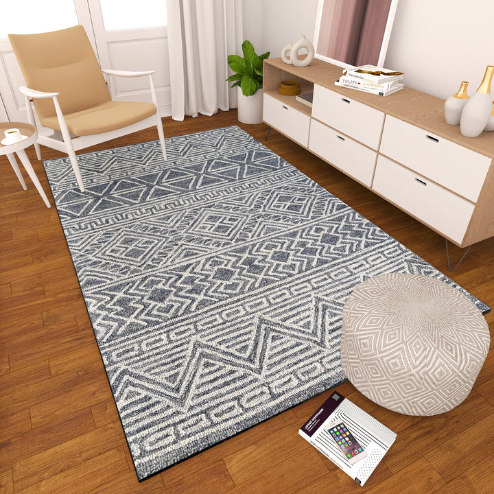 Premium Hand-Tufted Rug Made of 100% Wool - Still River Blue - 3x5 Feet