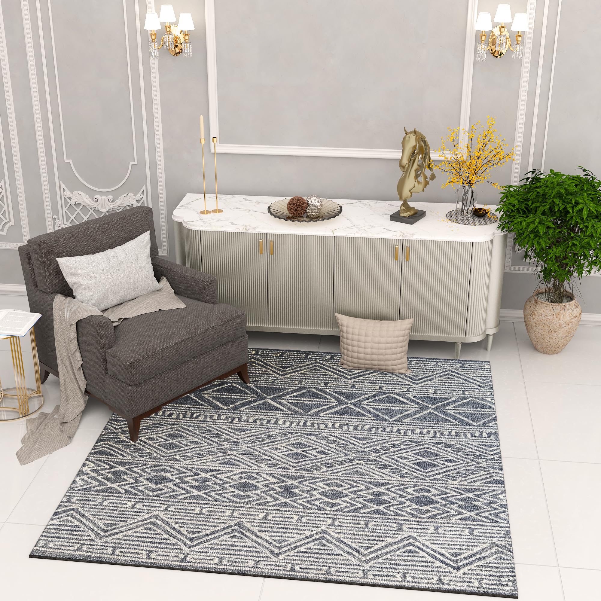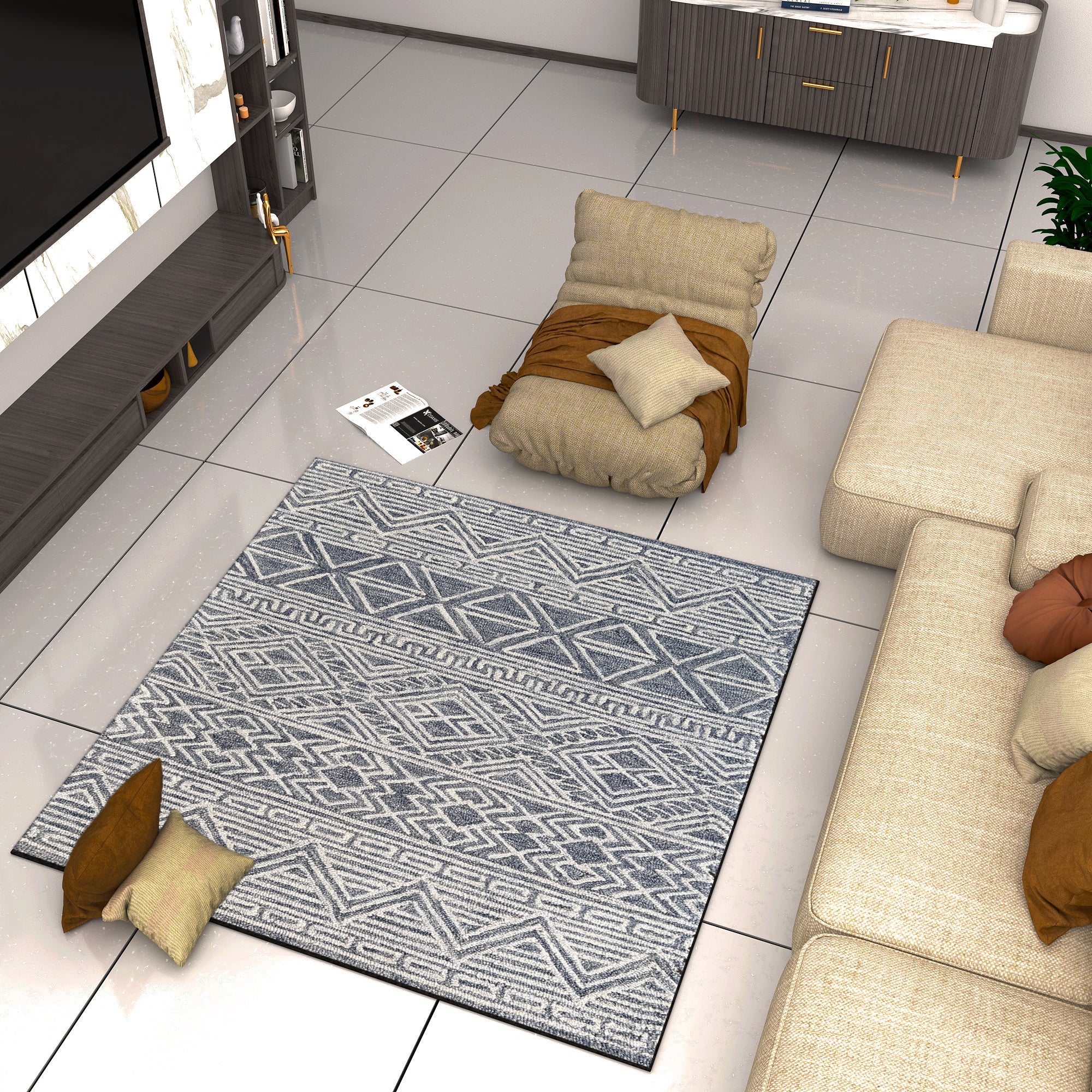 Premium Hand-Tufted Rug Made of 100% Wool - Still River Blue - 6x6 Feet