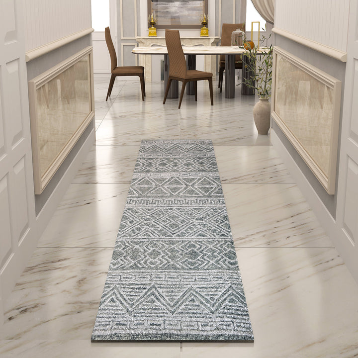 Premium Hand-Tufted Rug Made of 100% Wool - Still River Grey - 2x10 Feet