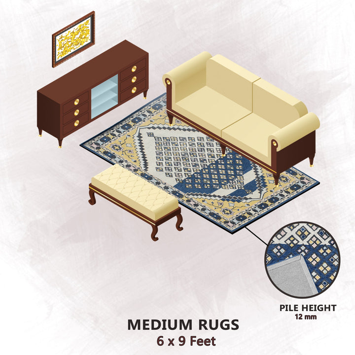 Premium Hand-Tufted Rug Made of 100% Wool - Tatar Folk - 6x9 Feet