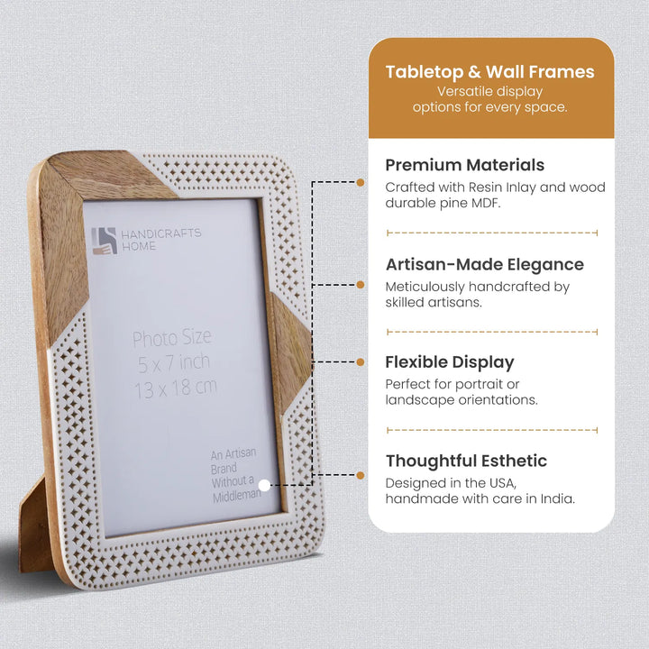 Resin and Wood Inlay Picture frame for Holiday Decor & Gifting - Beige , 4x6, 5x7