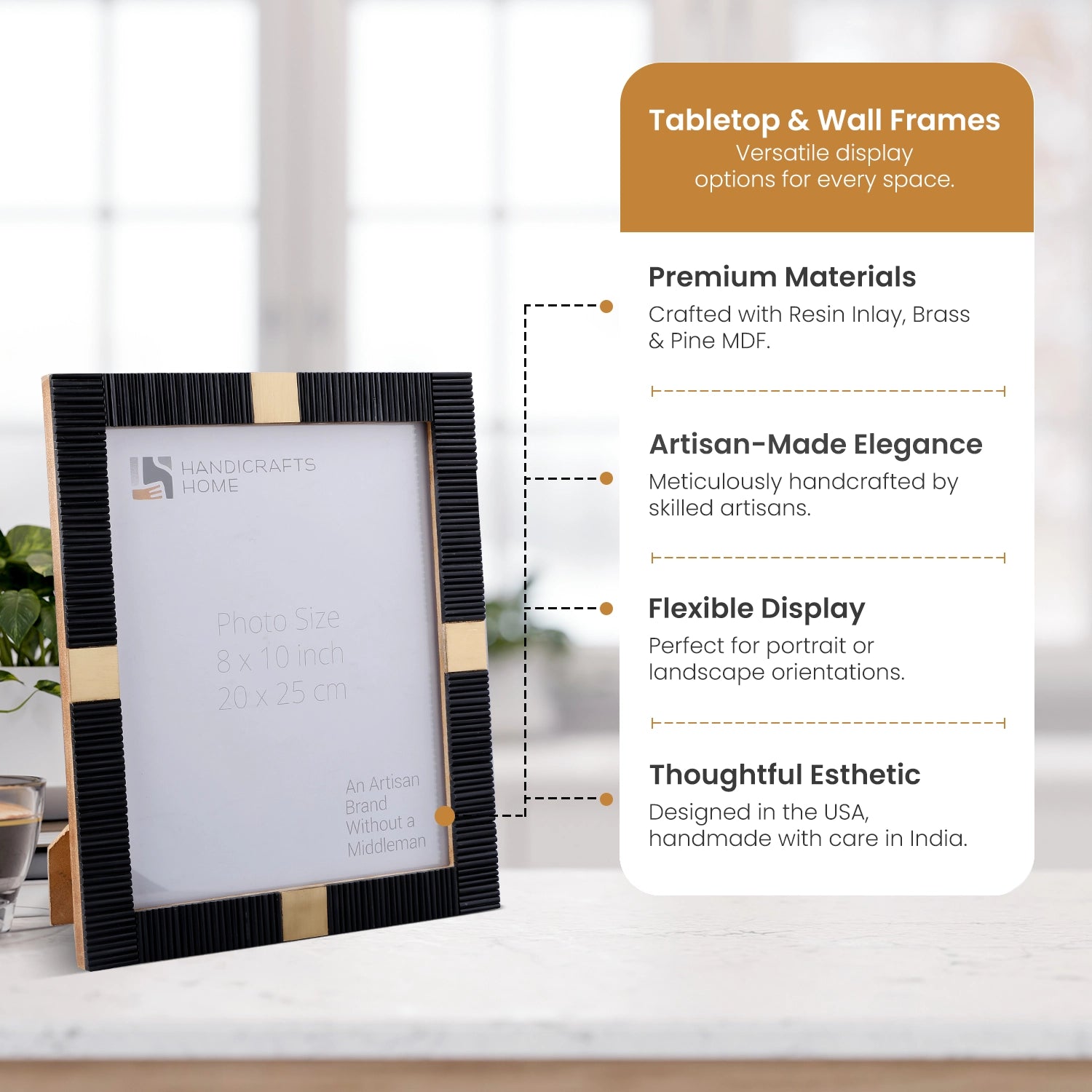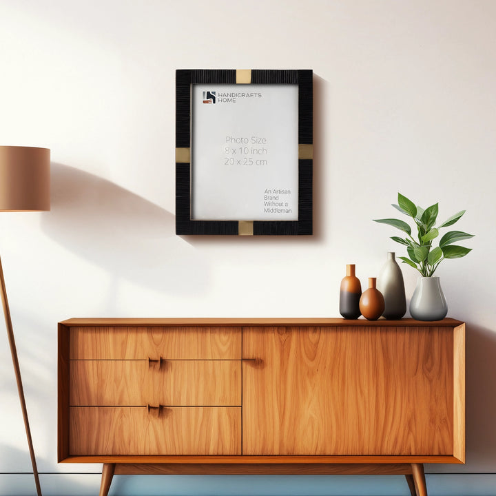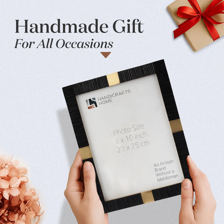 Resin Inlay Deco Black & Gold Picture Frame For Desk & Wall - 3 Sizes
