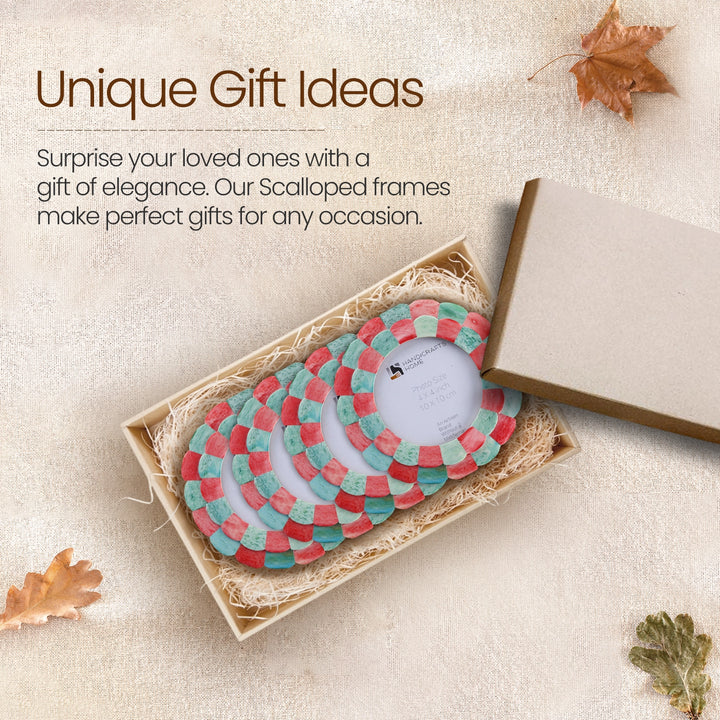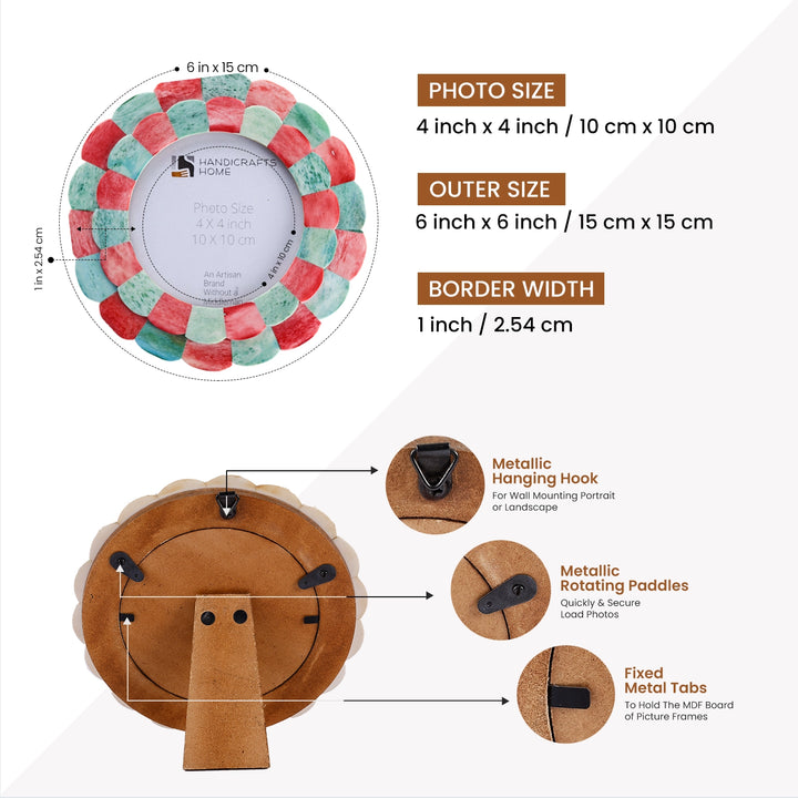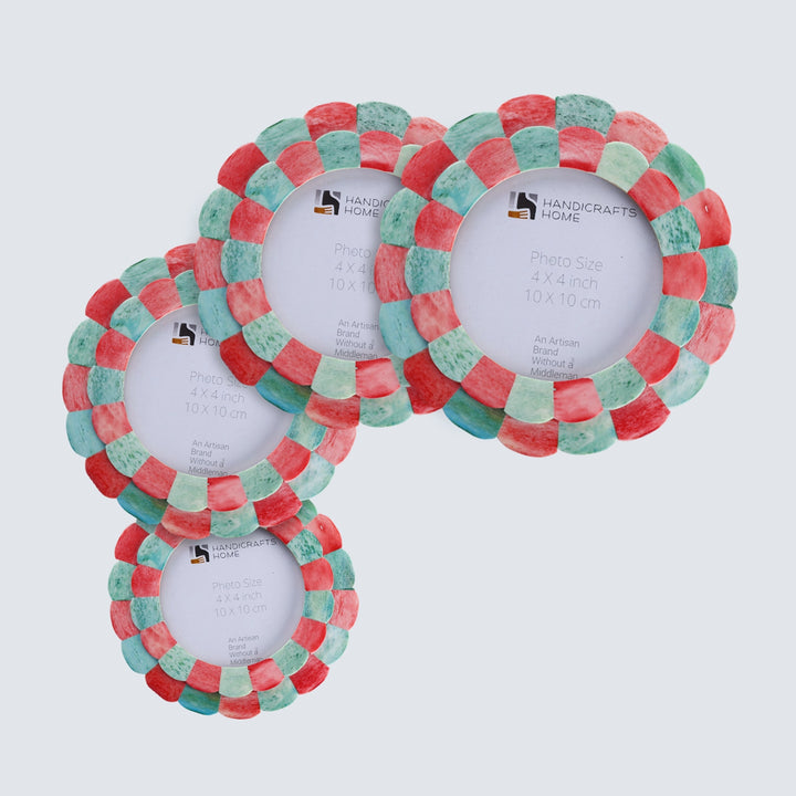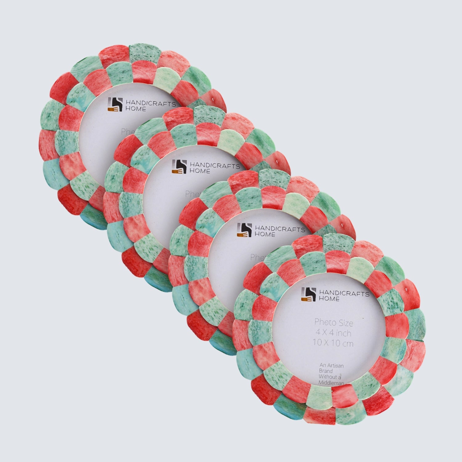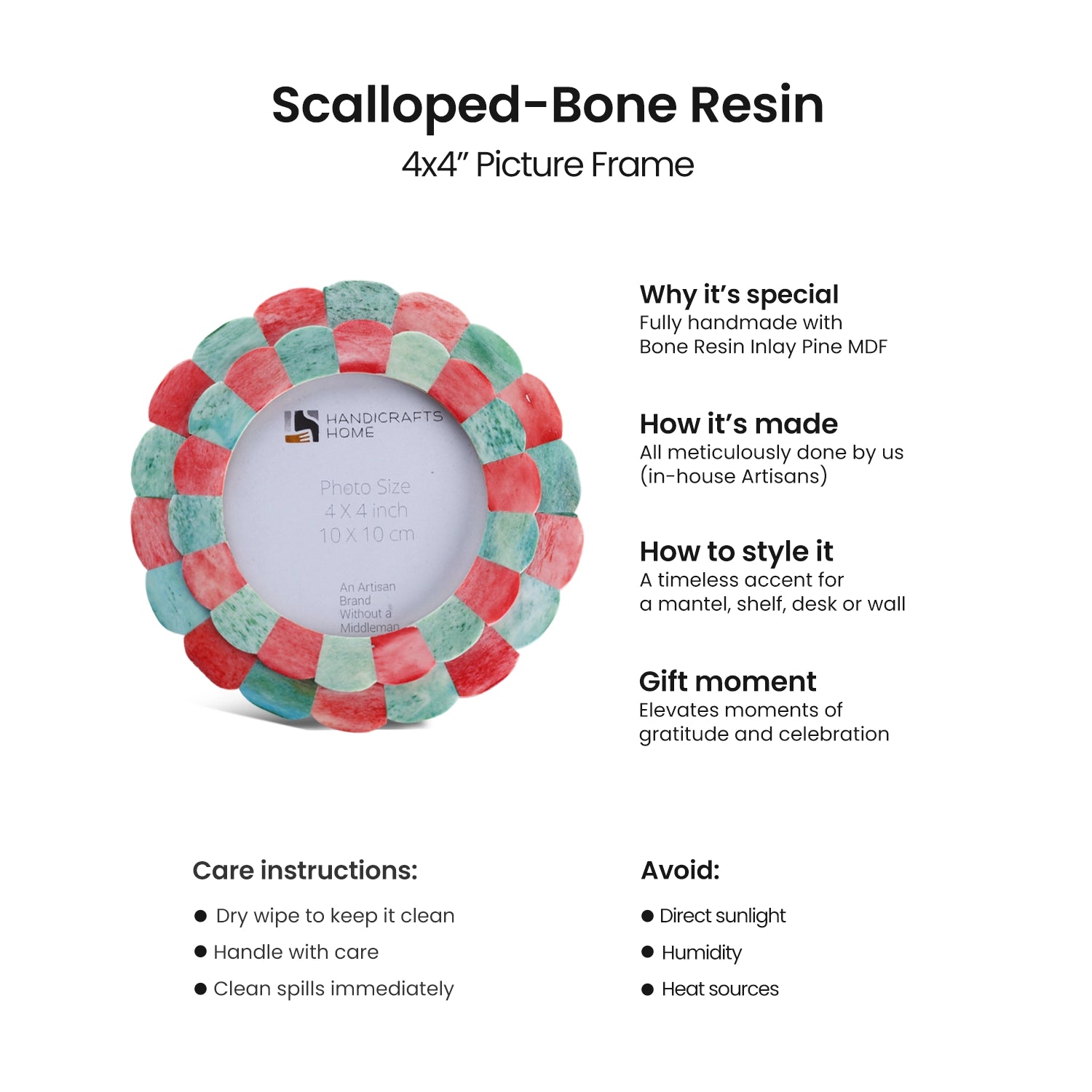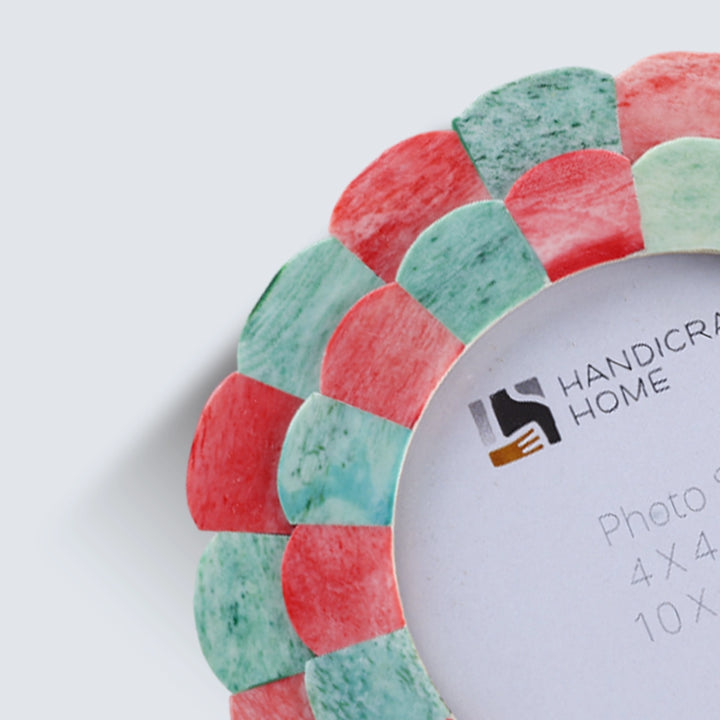Round Baby Picture Frames Scalloped Pattern Bone Inlay 4"x4", Green, Red