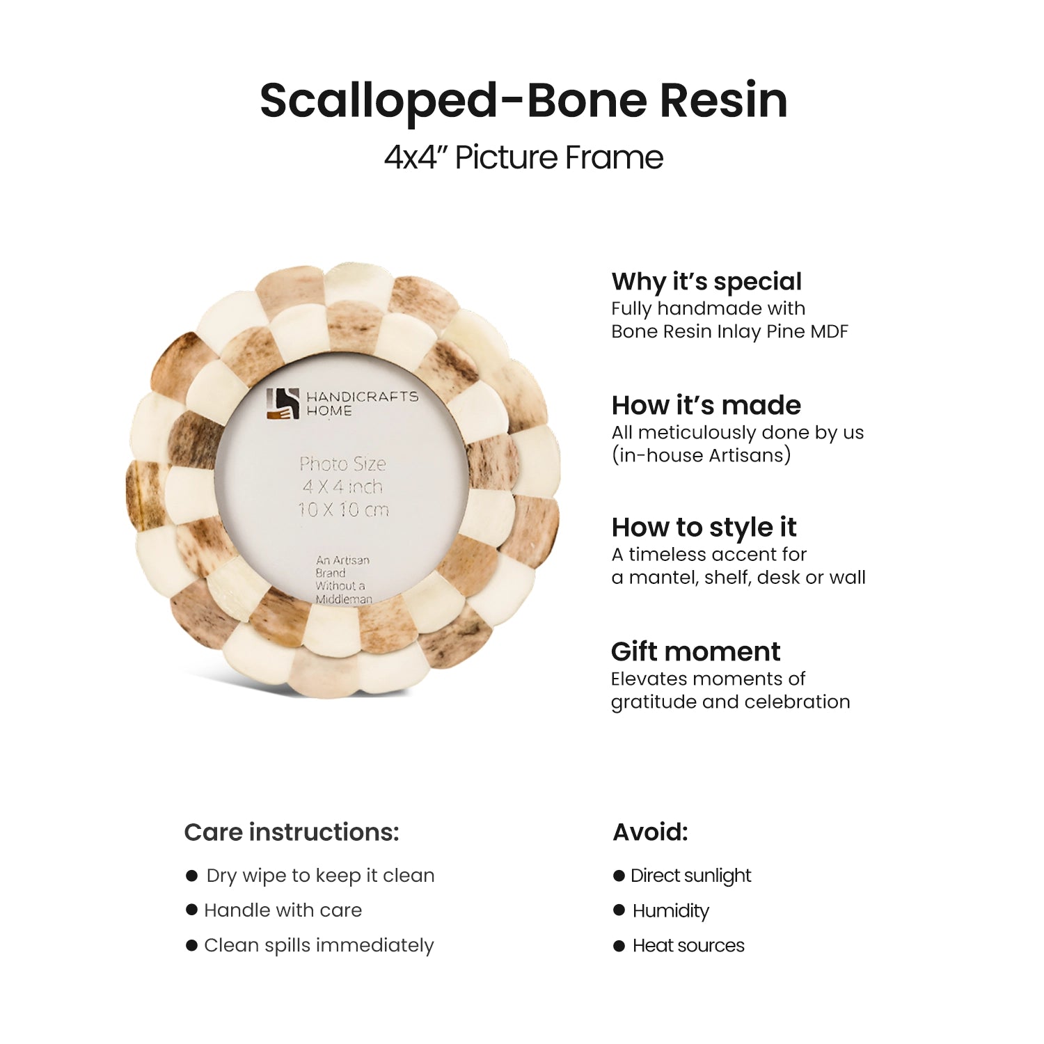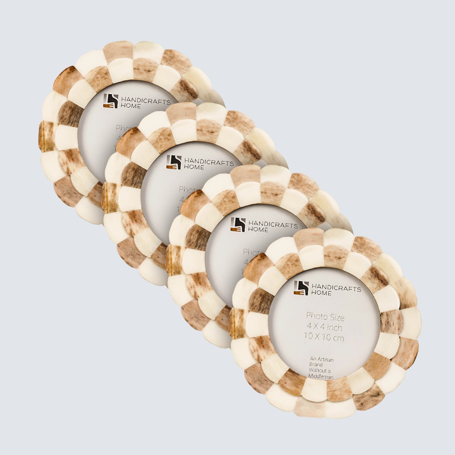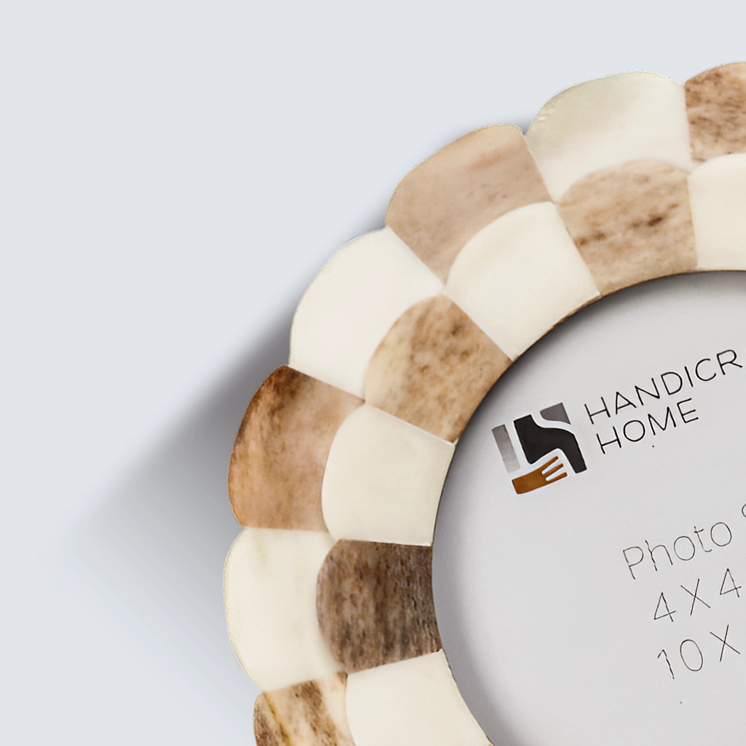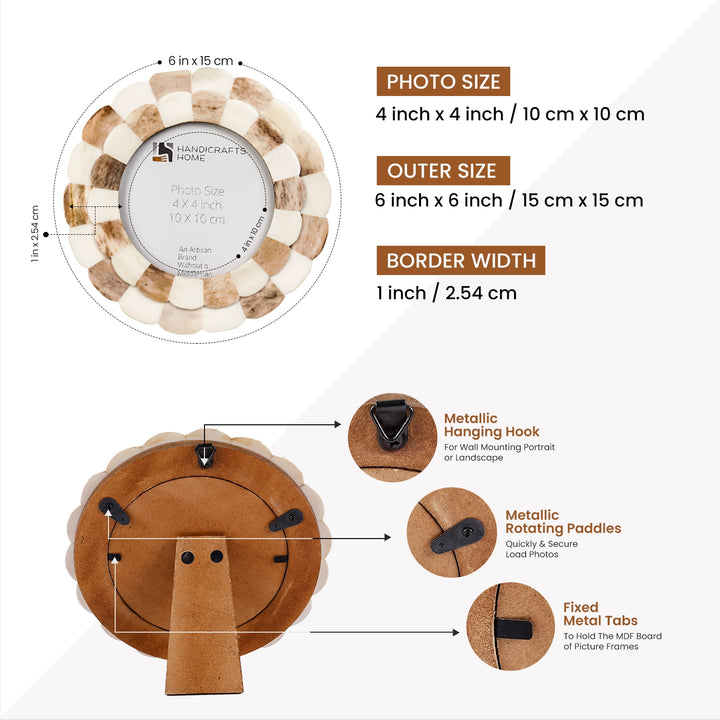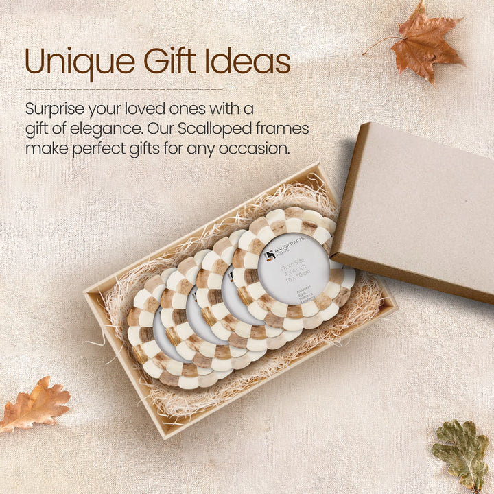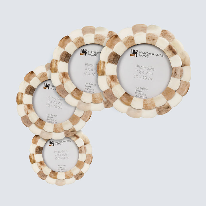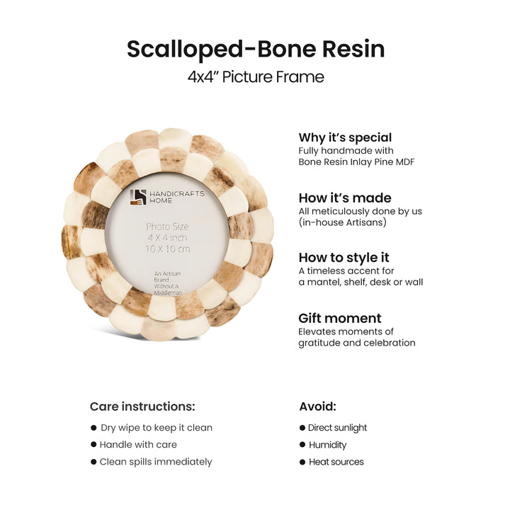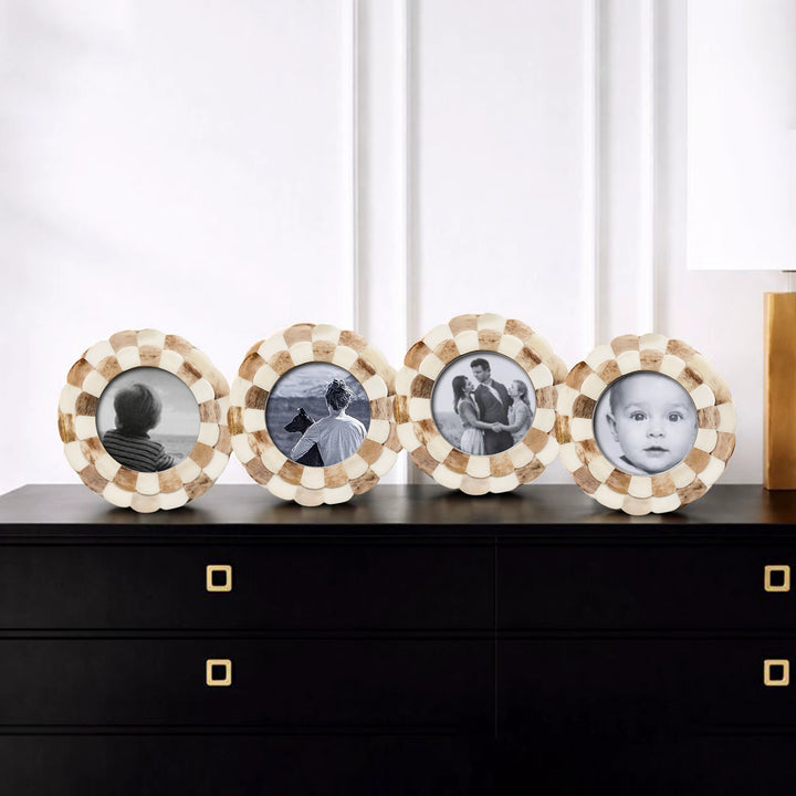 Round Baby Picture Frames Scalloped Pattern Bone Inlay 4"x4", Brown