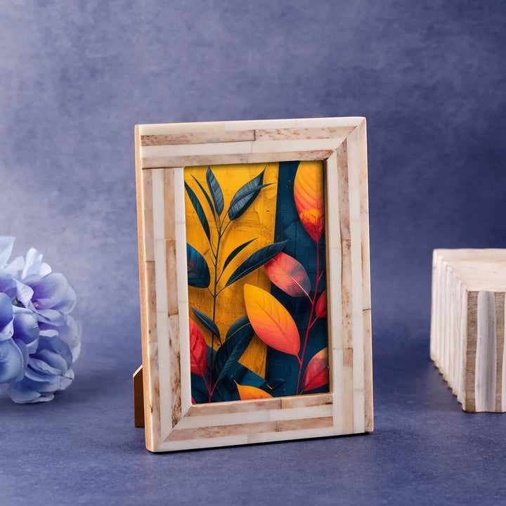 Sandstone Bone Inlay Picture Frame -White & Brown in 4x6 & 5x7