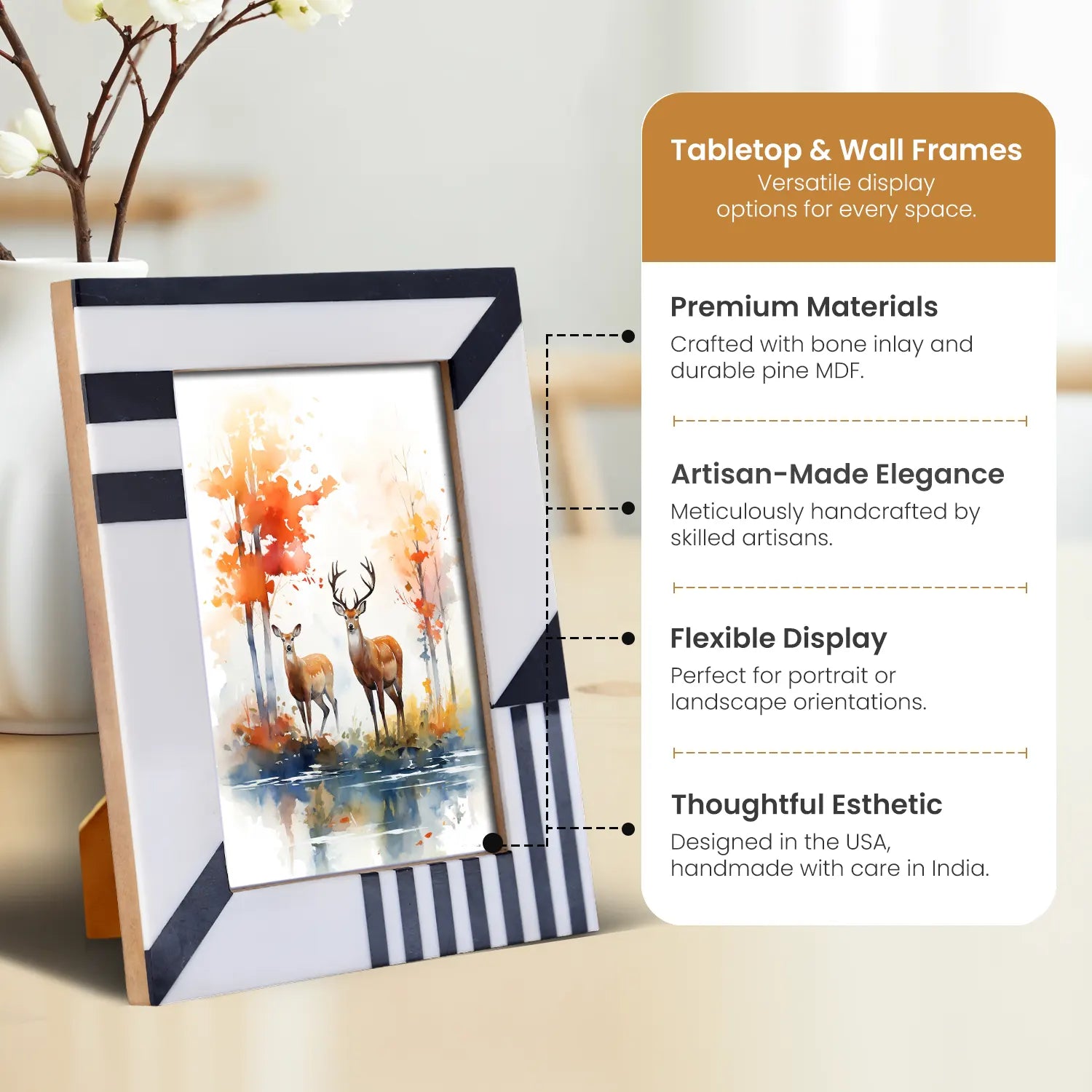 Silhouette Shaped Black & White Resin Inlay Picture Frame – 4x6 / 5x7