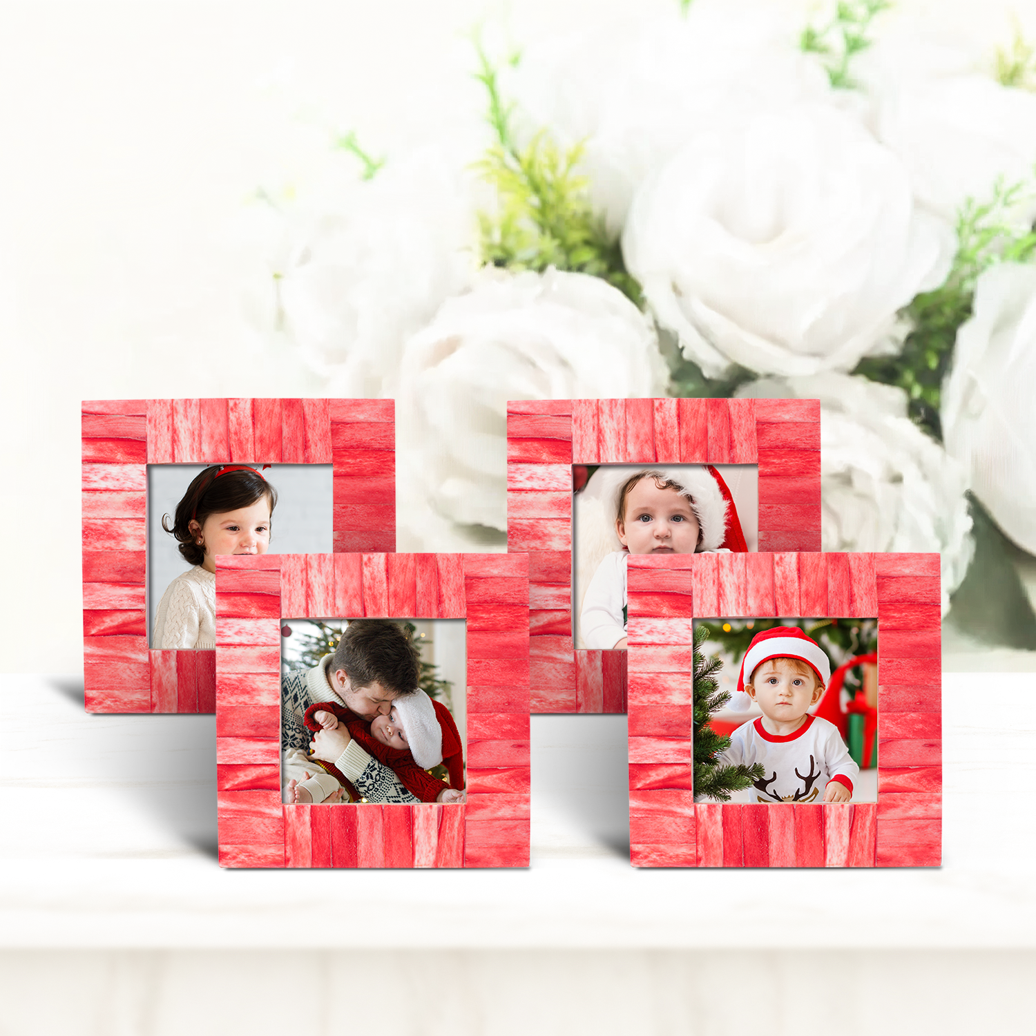 Picture Frames Classic Pattern Bone Inlay Combo 4"x4", Red