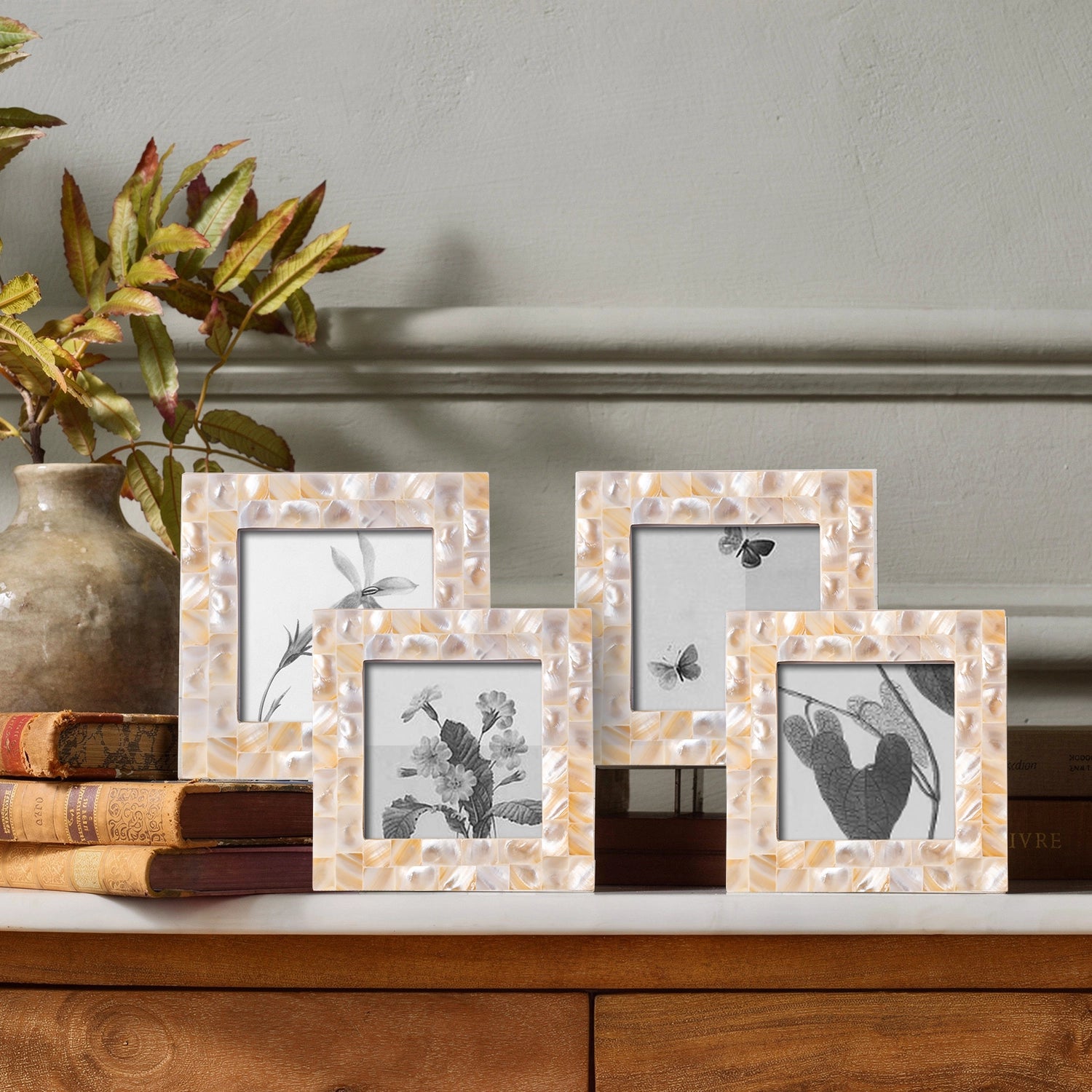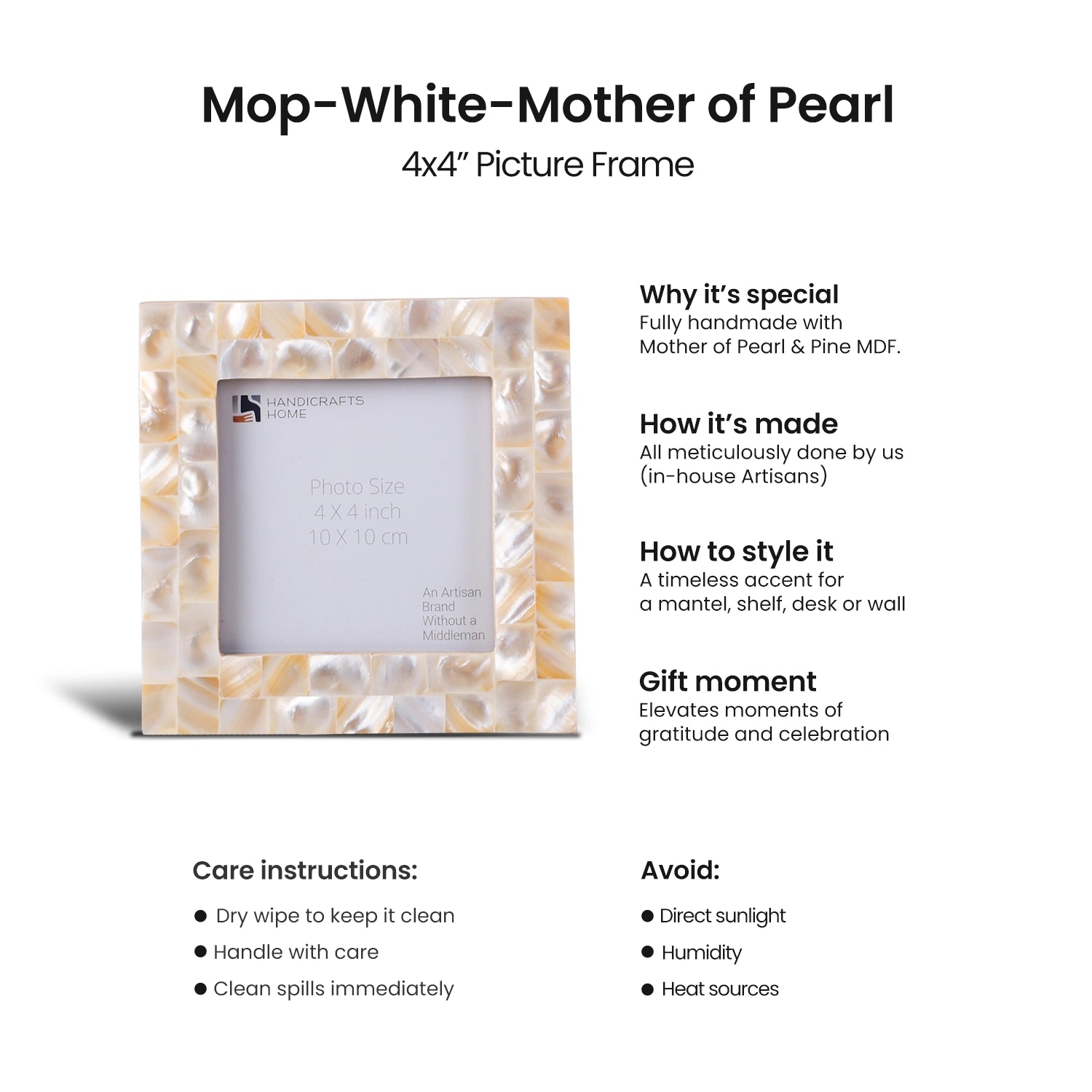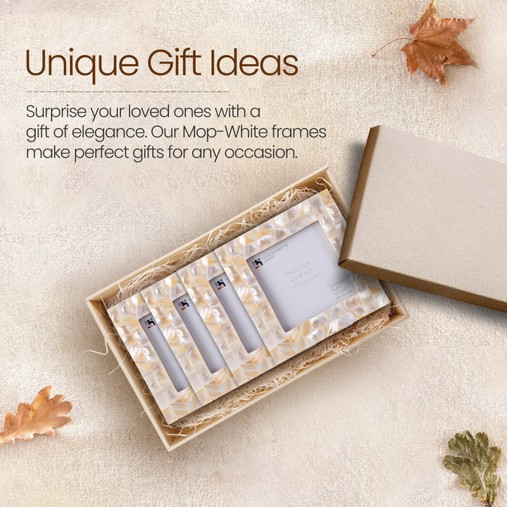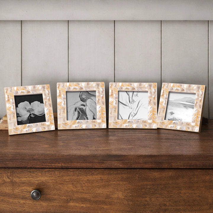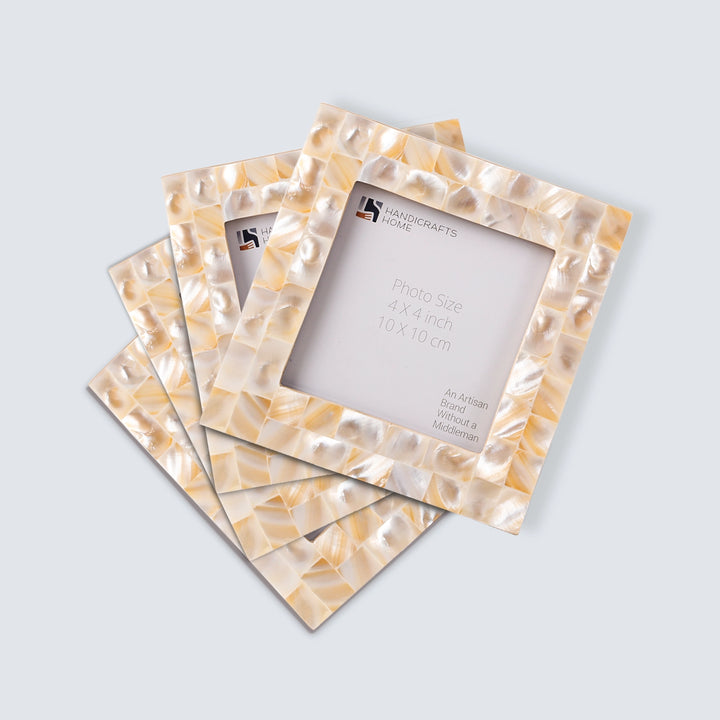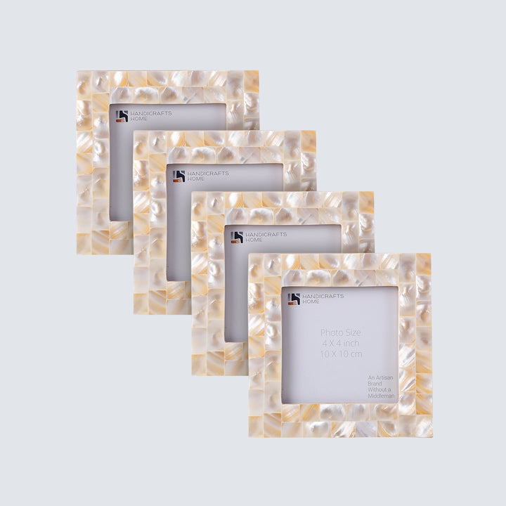 Square Baby Picture Frames Mother of Pearl 4"x4" , White