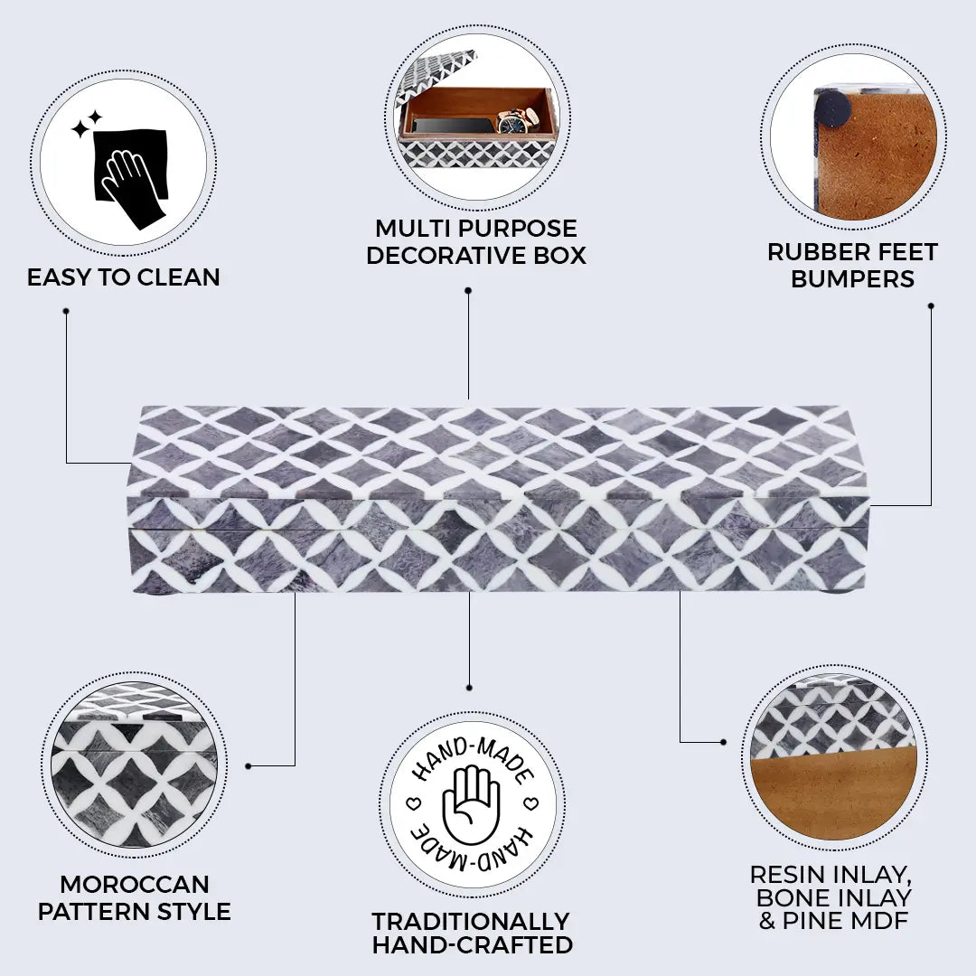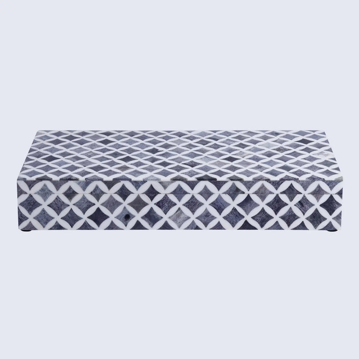 Star Pattern Decorative Storage Box, Bone & Resin Inlay in 7 Sizes, Grey