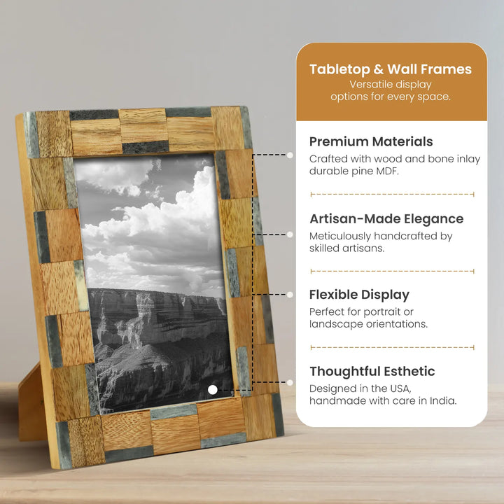 Stonewood Grey Brown Picture Frame Bone Inlay- 4x7 & 5x7
