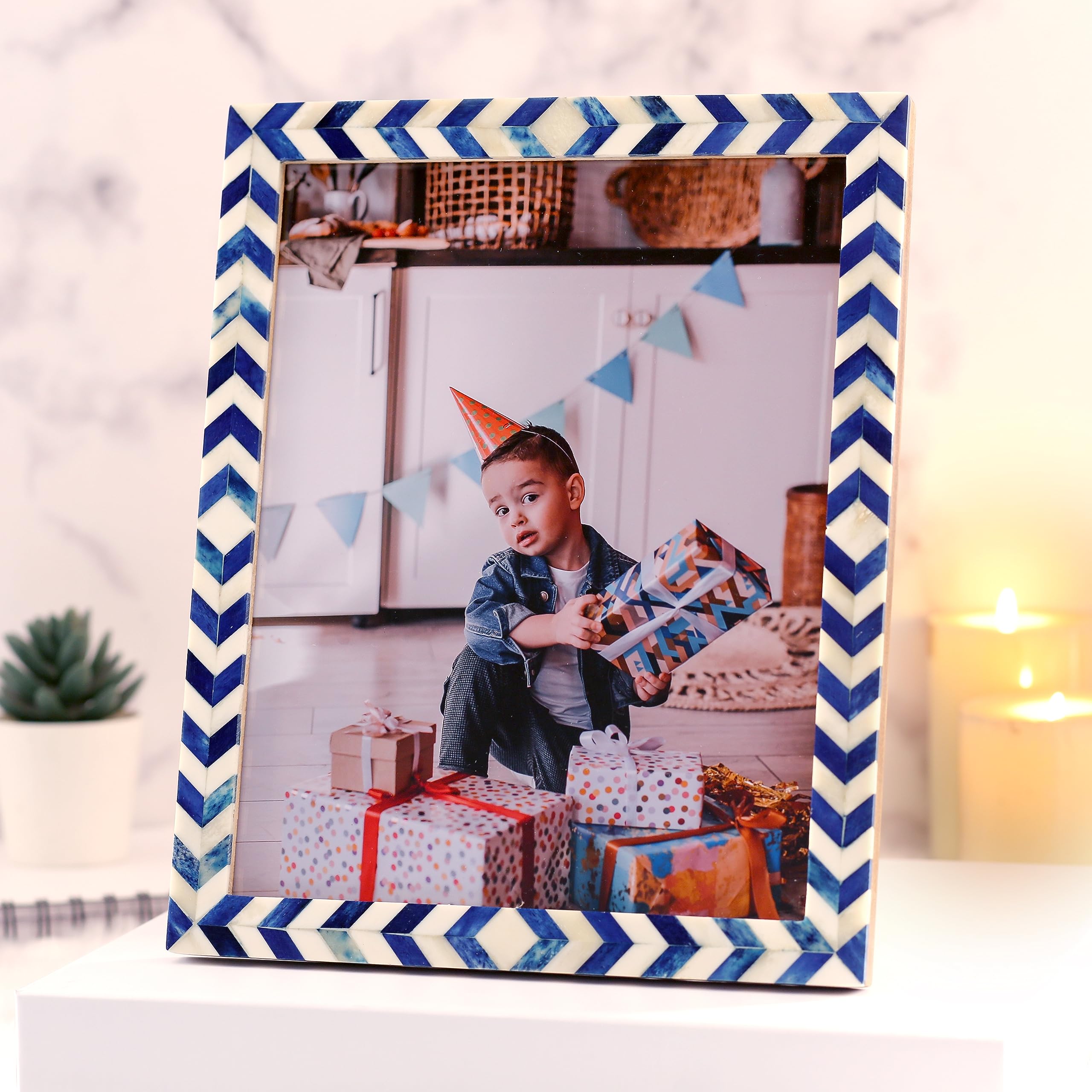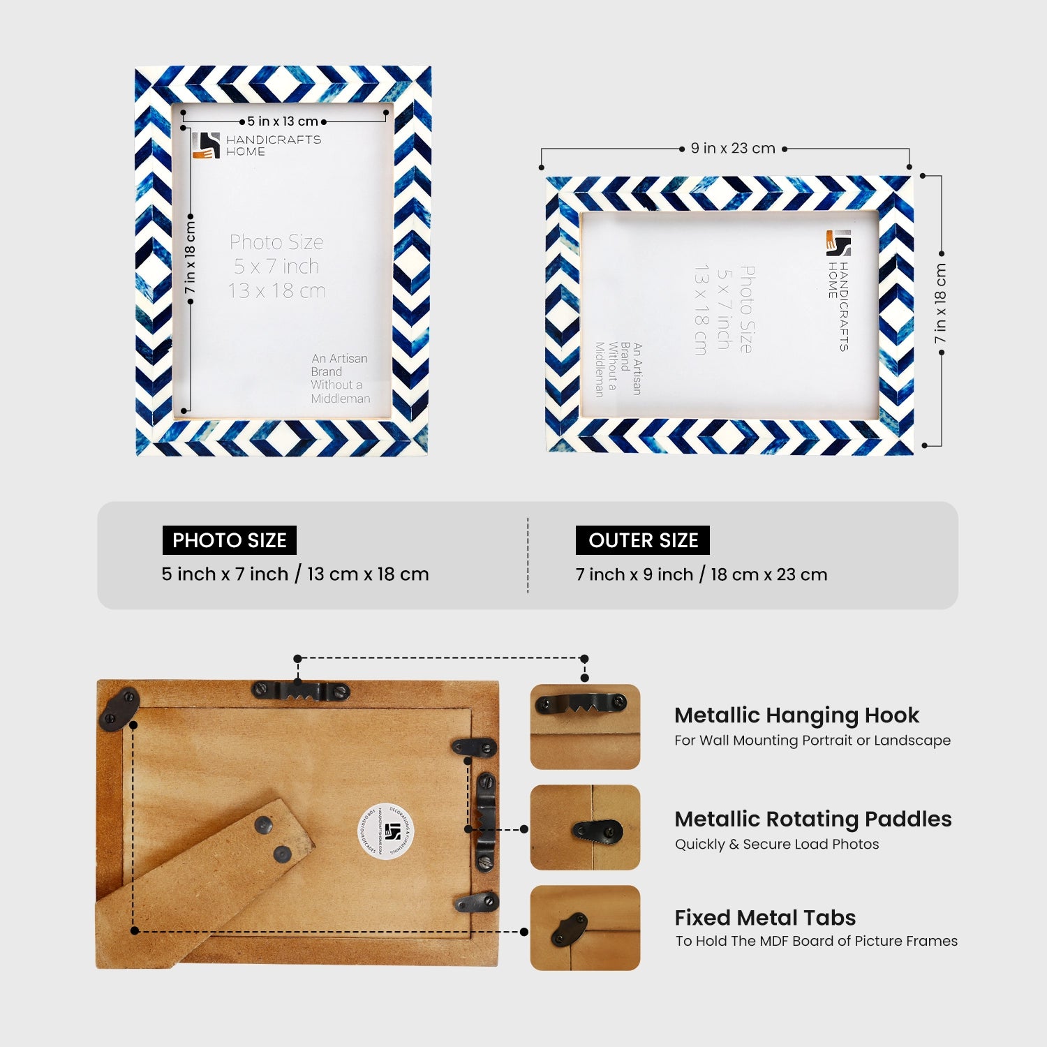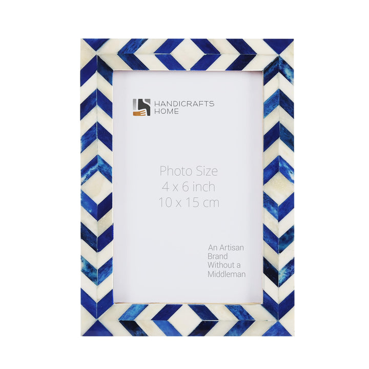 Mosaic Chevron Bone Inlay Picture Frame – Handcrafted Artisan Decor
