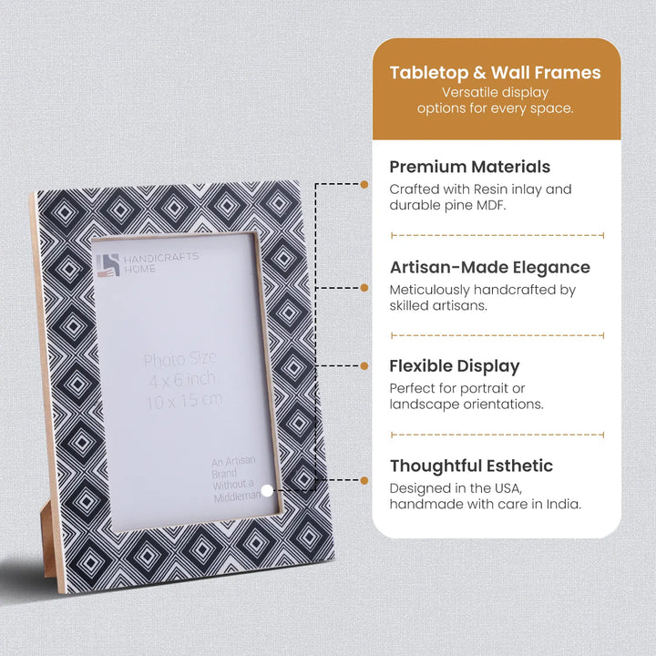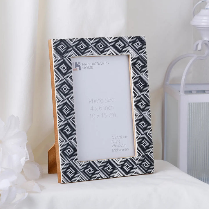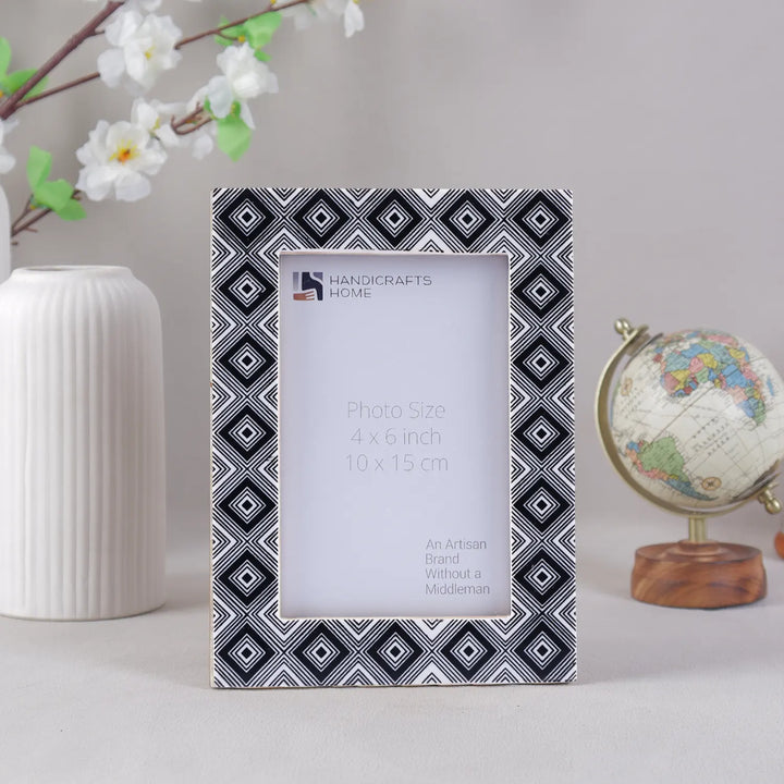 Tribal Black & White Picture Frame- Bone Inlay in 4x6 & 5x7