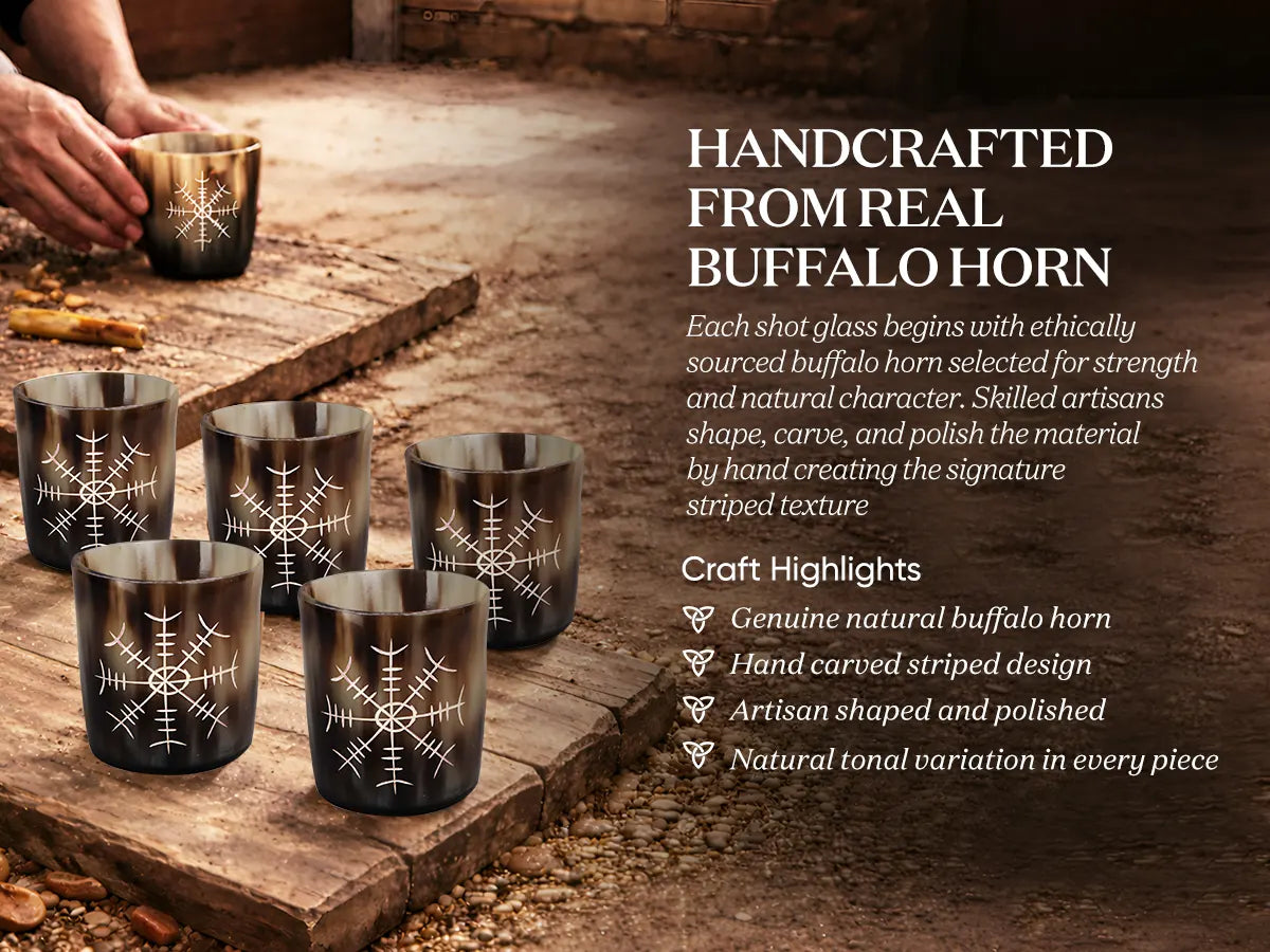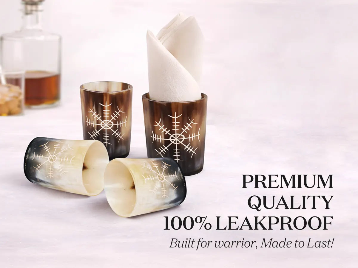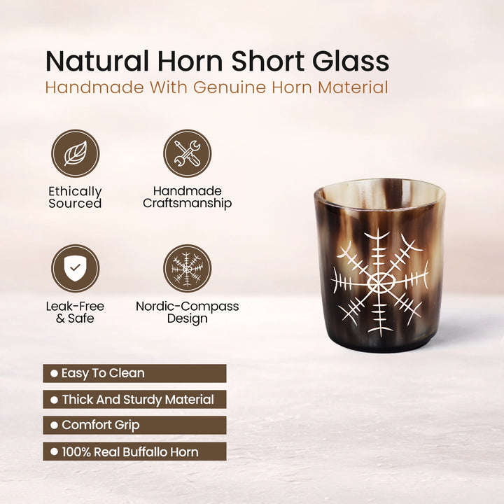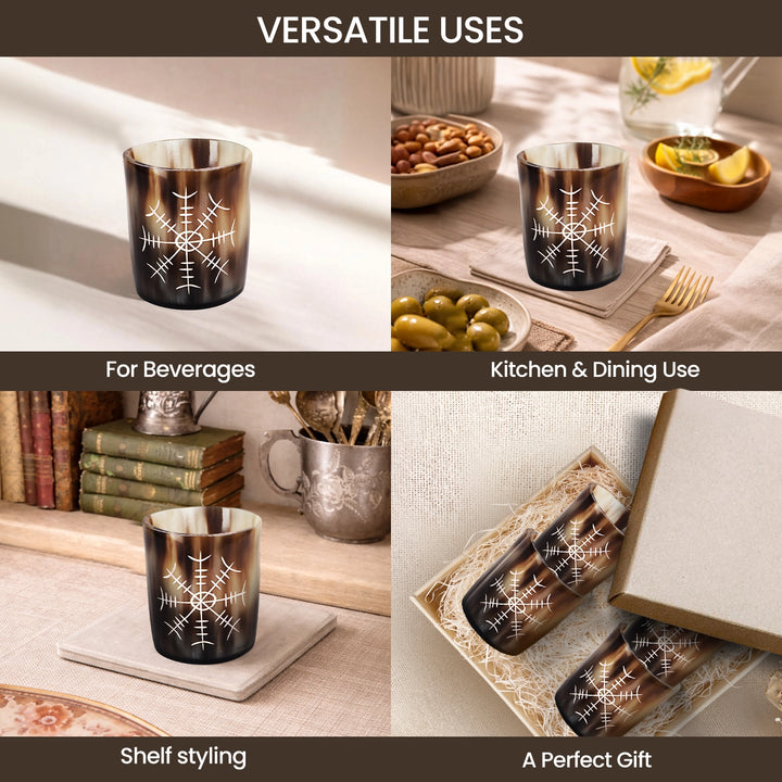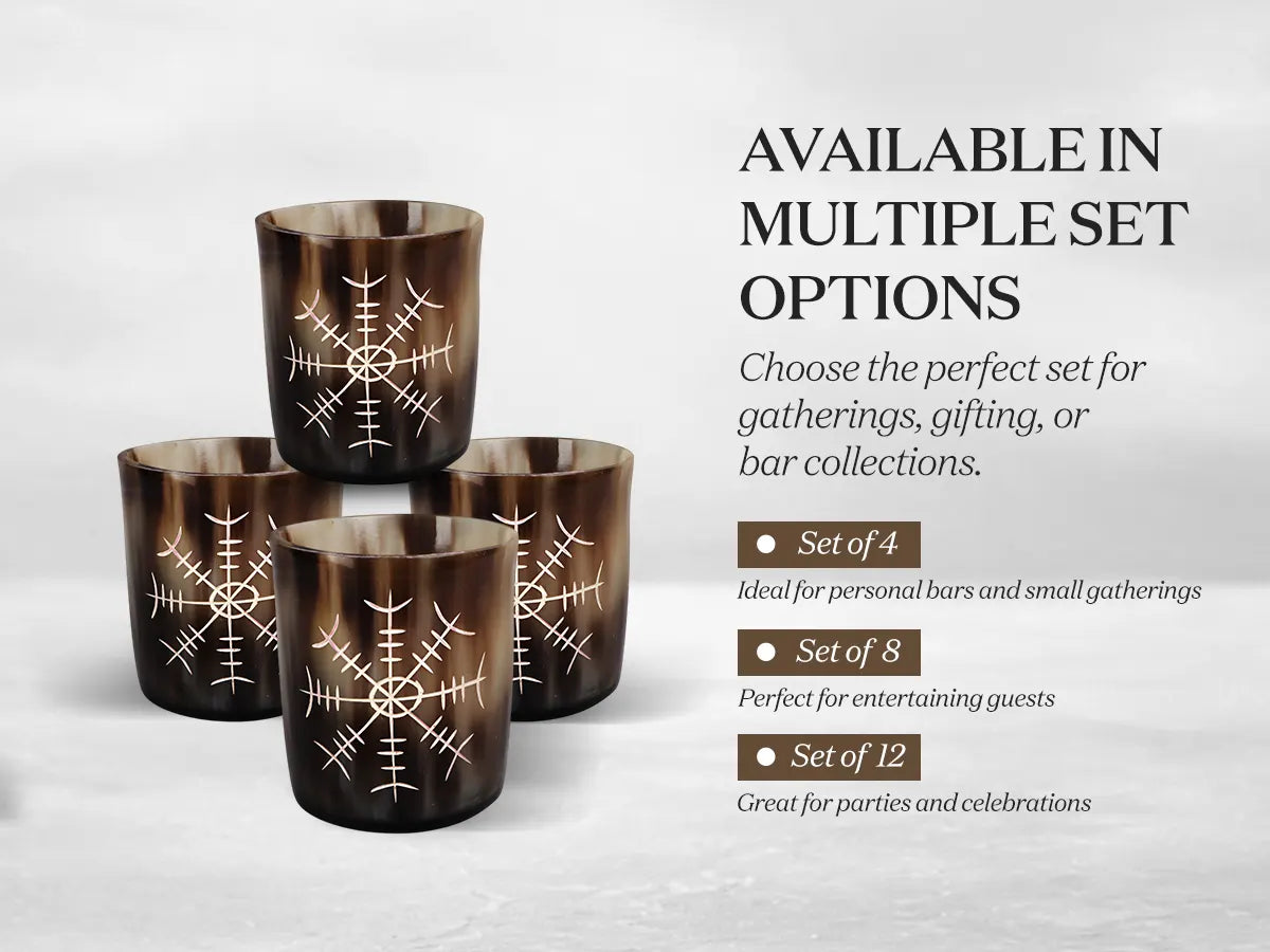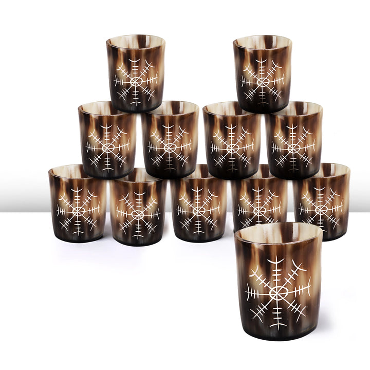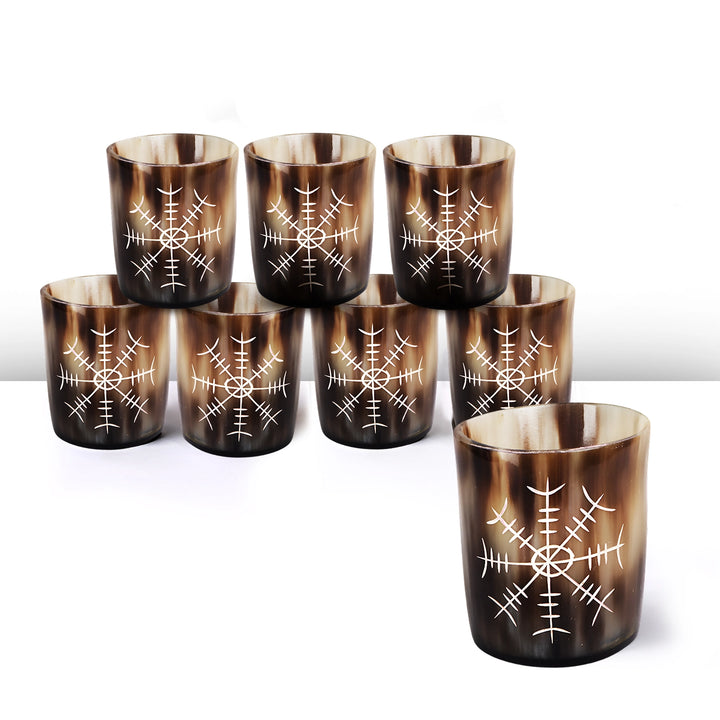Whiskey Shot Cups Set Nordic Compass Pattern Real Ox Horn 6.5 oz, Pack 4, 8 & 12