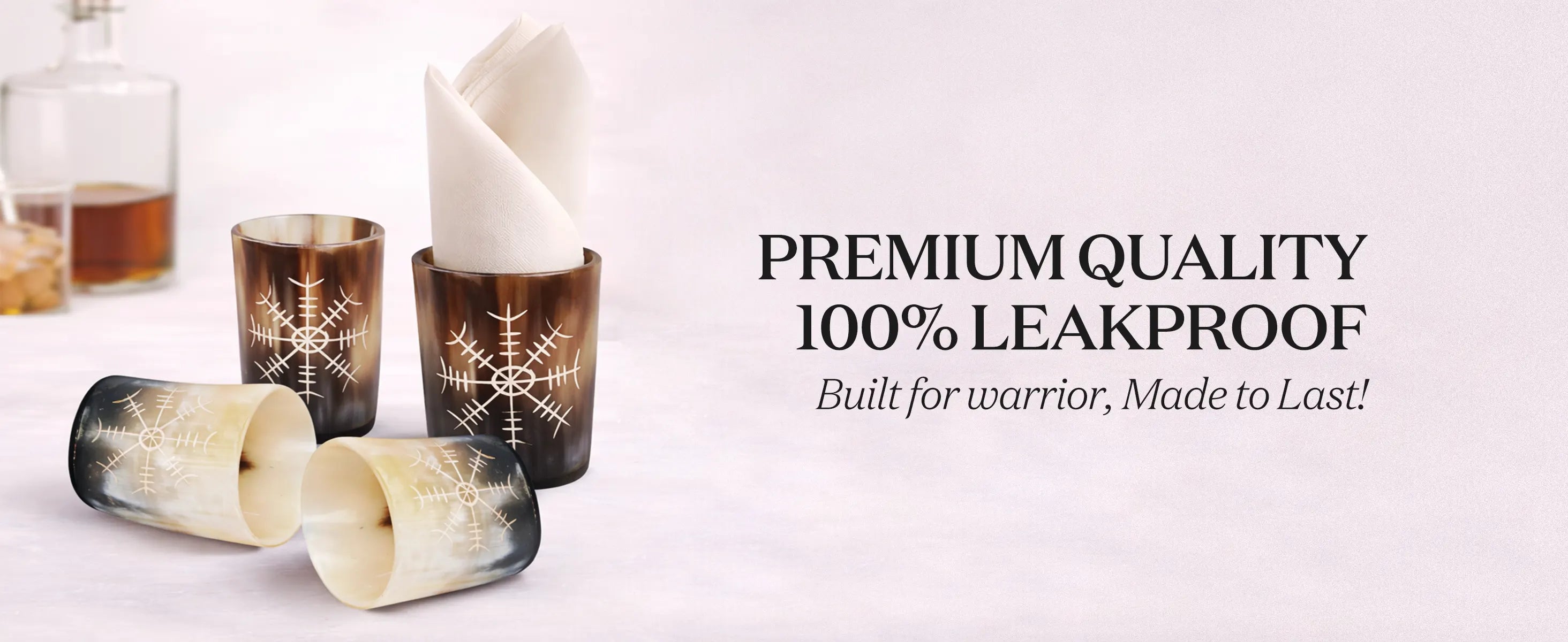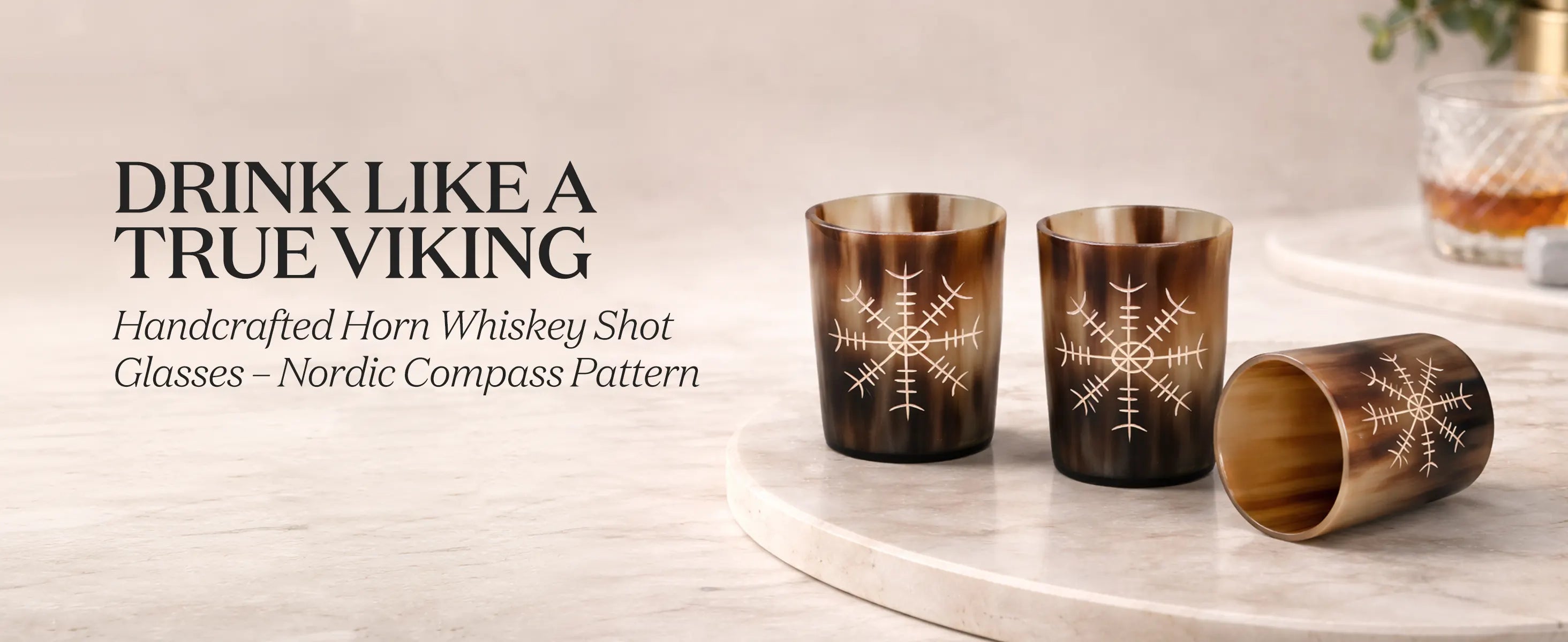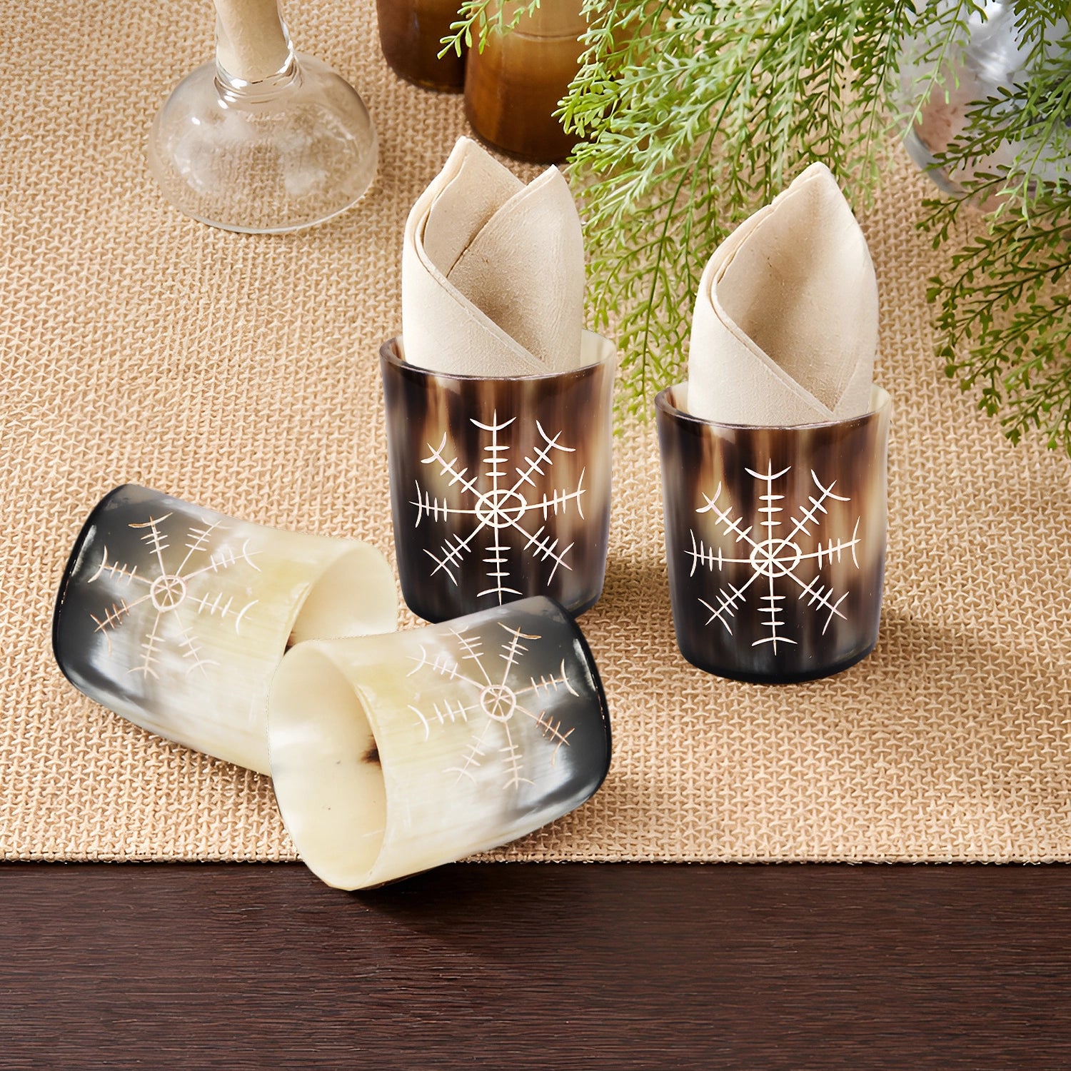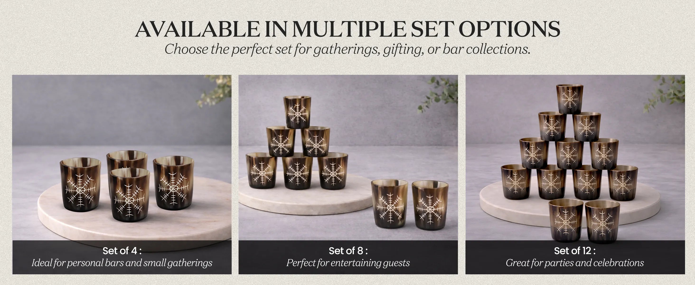 Whiskey Shot Cups Set Nordic Compass Pattern Real Ox Horn 6.5 oz, Pack 4, 8 & 12