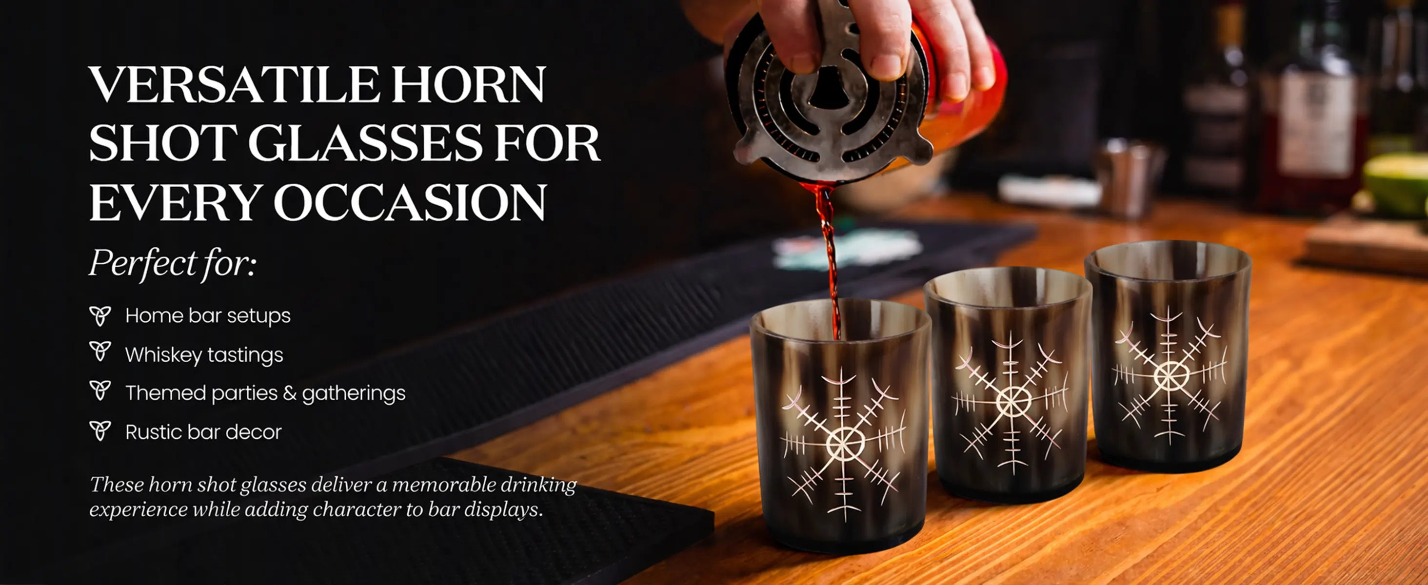 Buffalo Horn Whiskey Shot Glasses 6.5 oz - (Pack of 3)