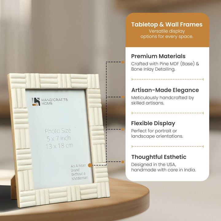 Picture Frame Brick Pattern Collection Bone Inlay White – 4x6 & 5x7"