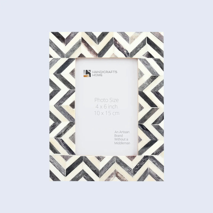 Picture Frames Herringbone Pattern Bone Inlay Collection in 2 Sizes, Grey